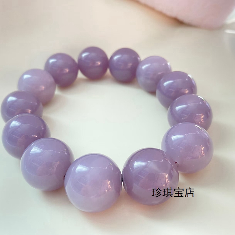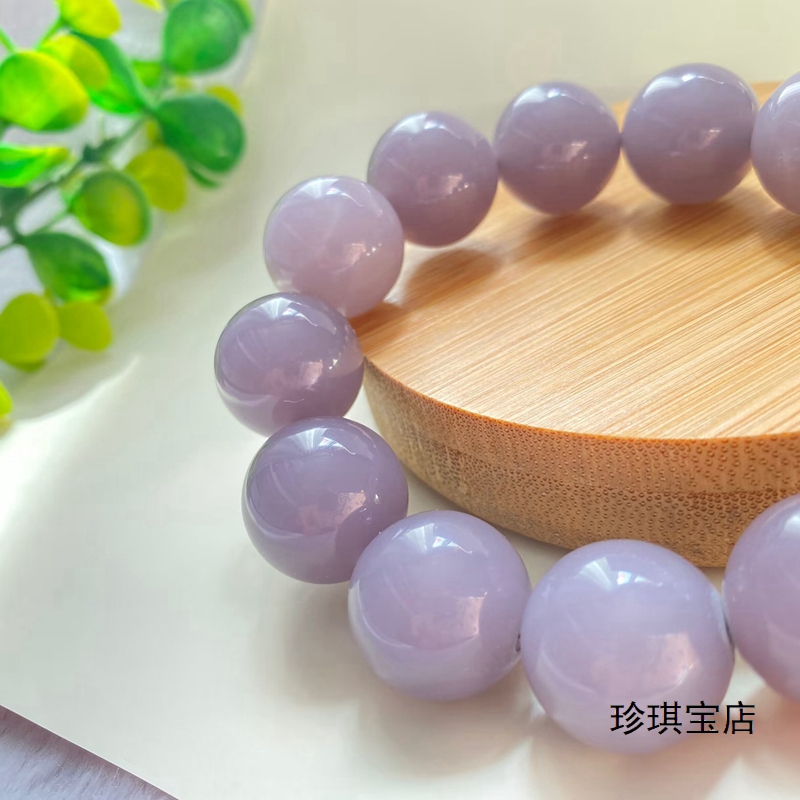 新疆和田玉圆珠手串青海玉昆仑玉单圈烟紫手链佛珠紫色手饰品男士