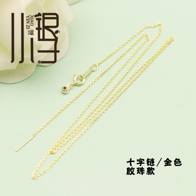 S925纯银项链 针尾可调节盒子链十字链 银镀金锁骨链DIY银饰裸链