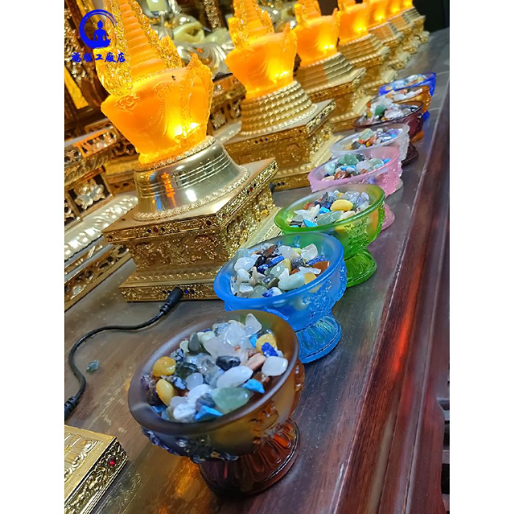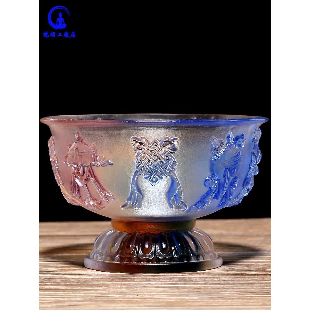 八吉祥供碗摆件供佛水杯供佛用品小号密宗圣水杯佛前供具琉璃供杯