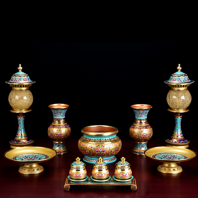 现货速发彩全铜香炉佛具用品大全供奉供具家用佛前供佛水杯花瓶供