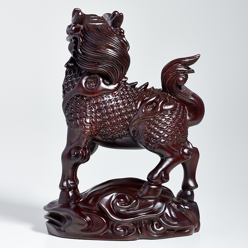 黑檀木雕刻麒麟摆件实木质家居一对客厅桌面装饰品摆设红木工艺品