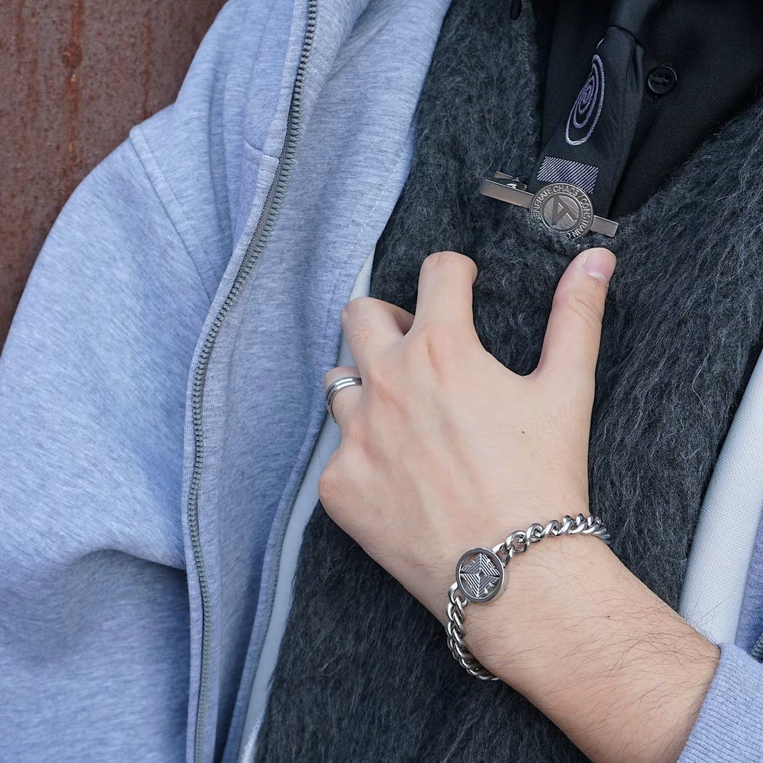 【双11爆款】阿玛尼官方正品手链男 鹰标圆牌男士手链潮酷古巴链