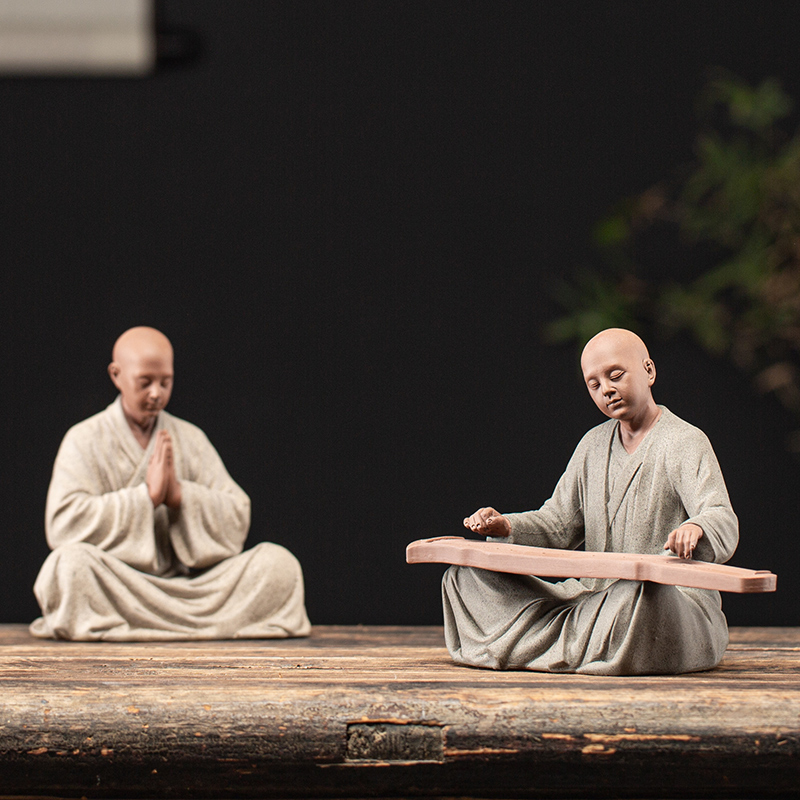 中式简约功夫和尚家居客厅书房办公室微景观造景装饰禅意桌面摆件