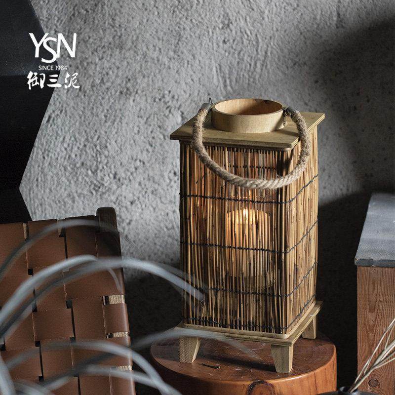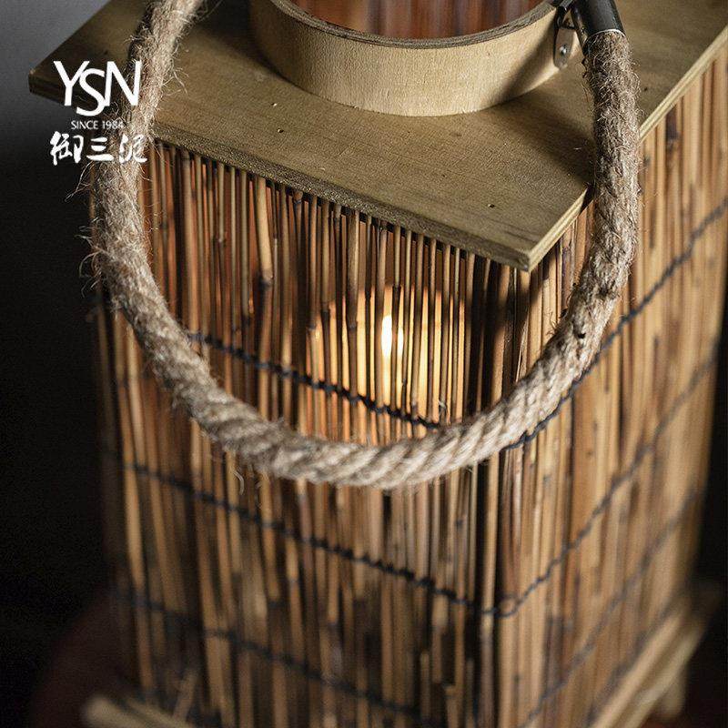 御三泥木质手提灯笼绳编竹编烛台夜灯烛光晚饭厅乡村摆件拍照道具