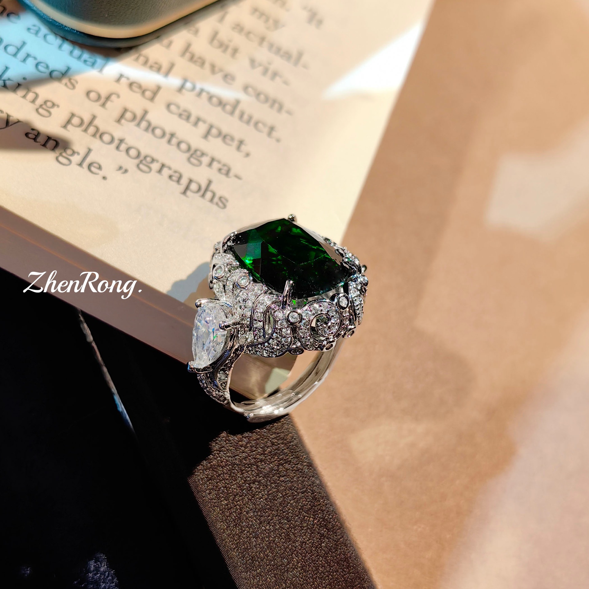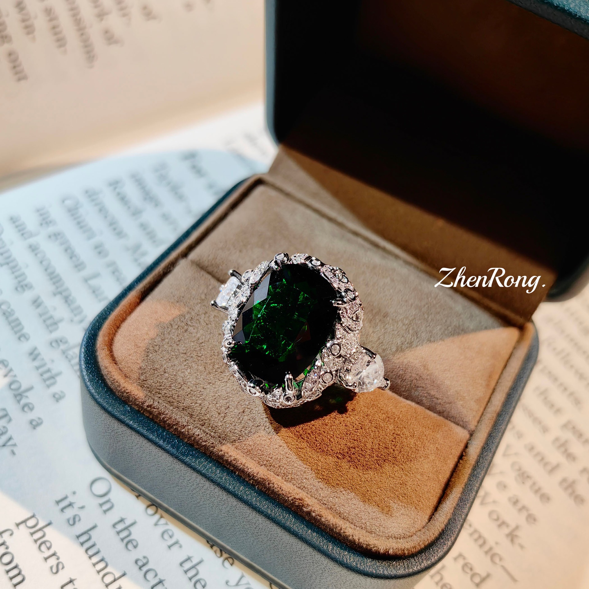时尚气质培育极微油哥伦比亚木佐祖母绿戒指简约百搭鸽子蛋钻戒女