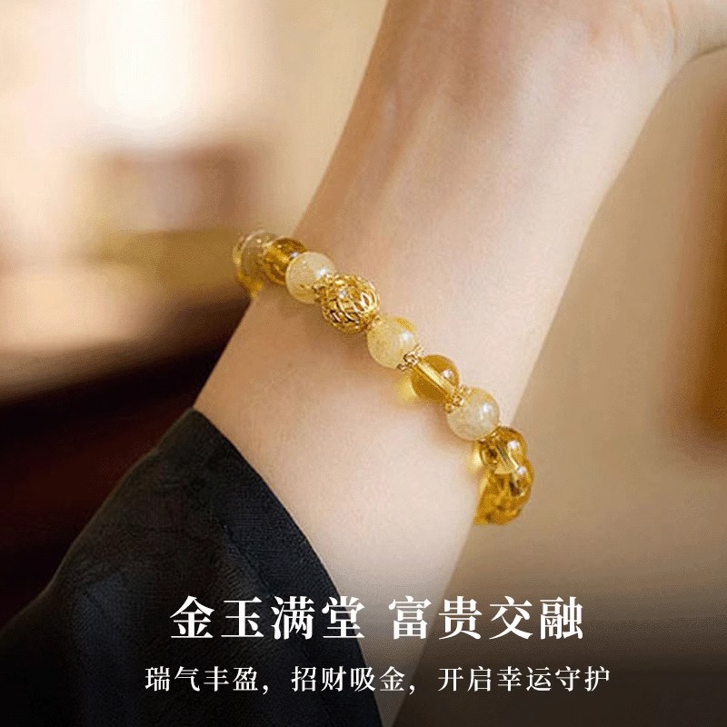 普陀山黄水晶手链招财转运珠官方旗舰店暴富手串本命年送女友男友