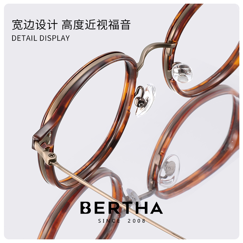 蔡司镜片防蓝光眼镜近视女度数可配素颜高级感圆框复古超轻bertha