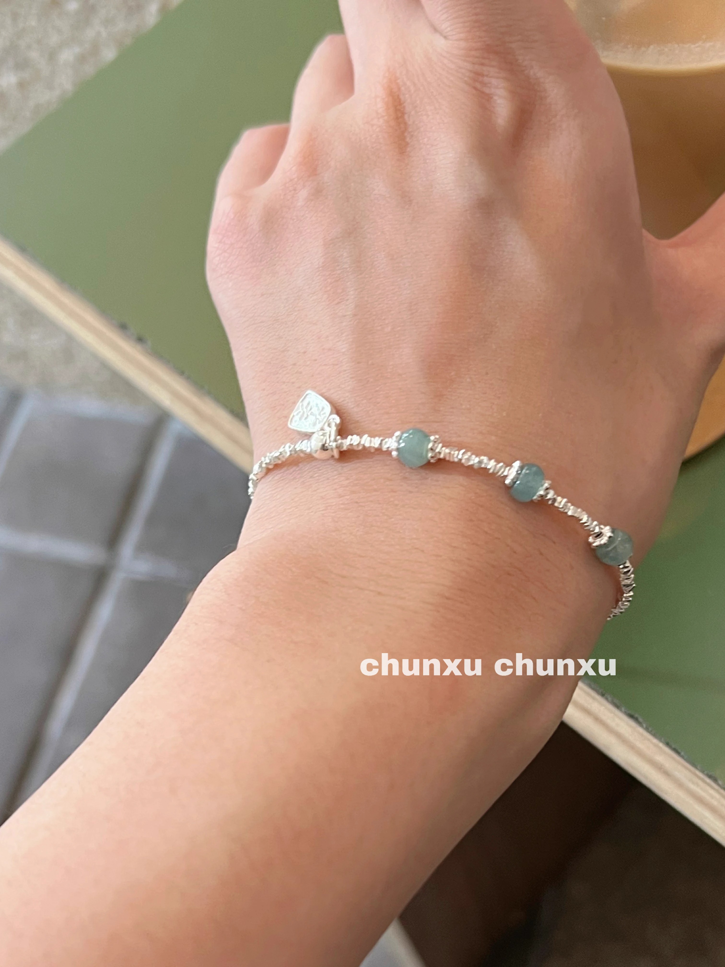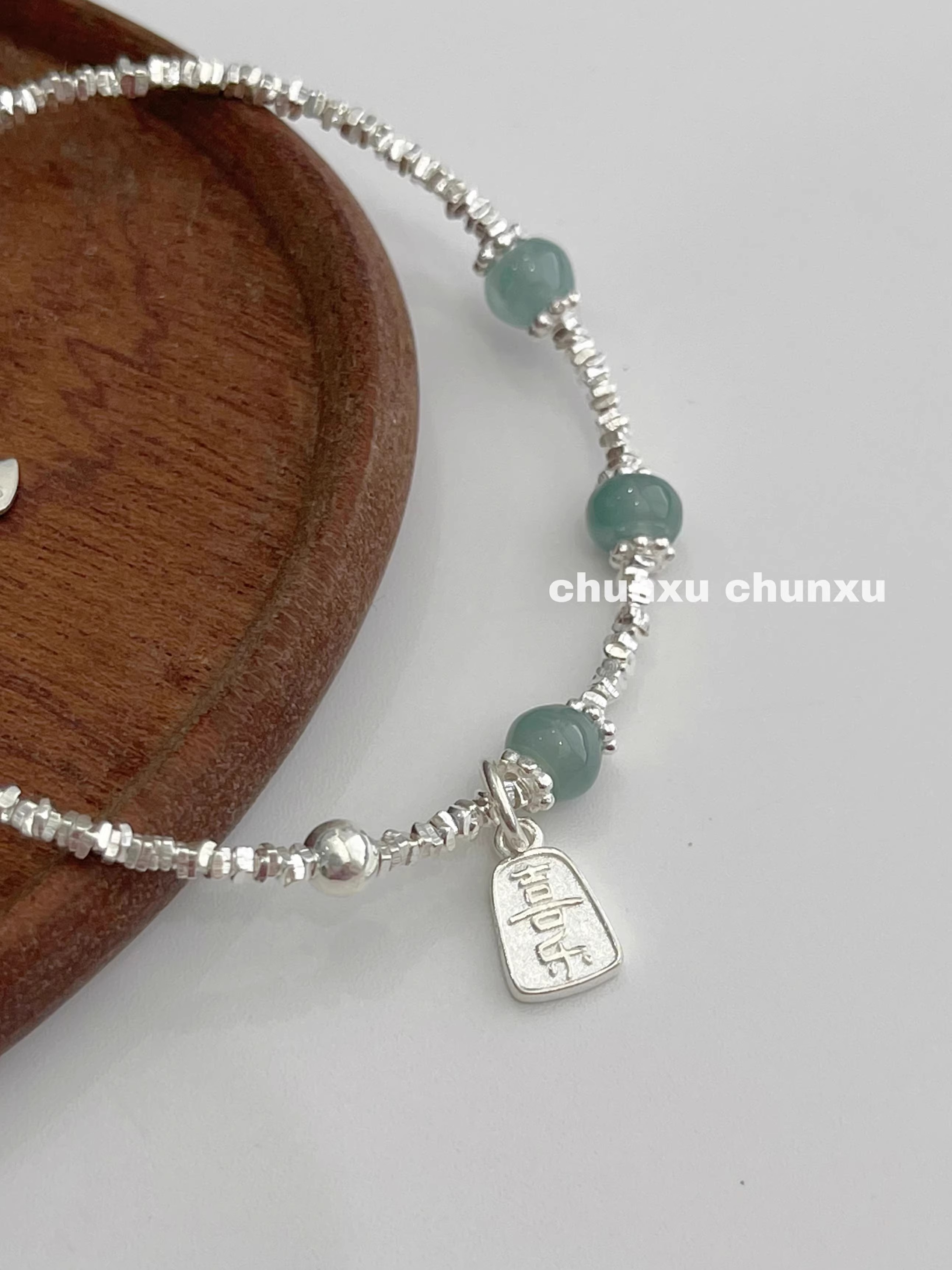 s925纯银春序碎银手链女款小众福牌轻奢新中式2025新款和田玉手饰