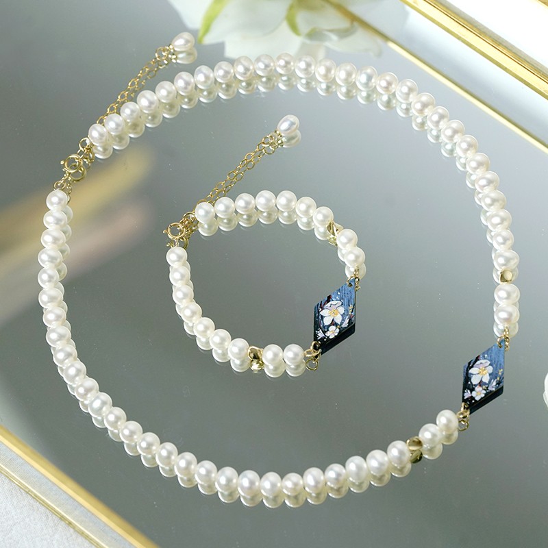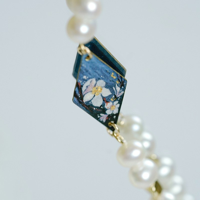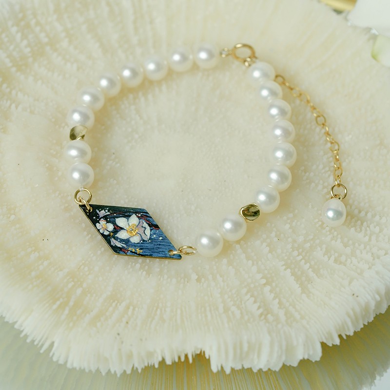 绘间手绘【海棠-法式q珍珠手链】气质超仙蓝色贝国潮礼物耳环耳夹