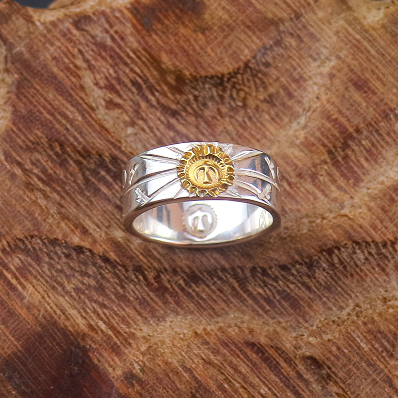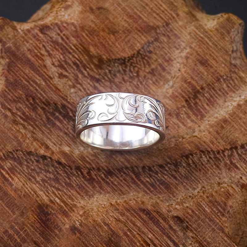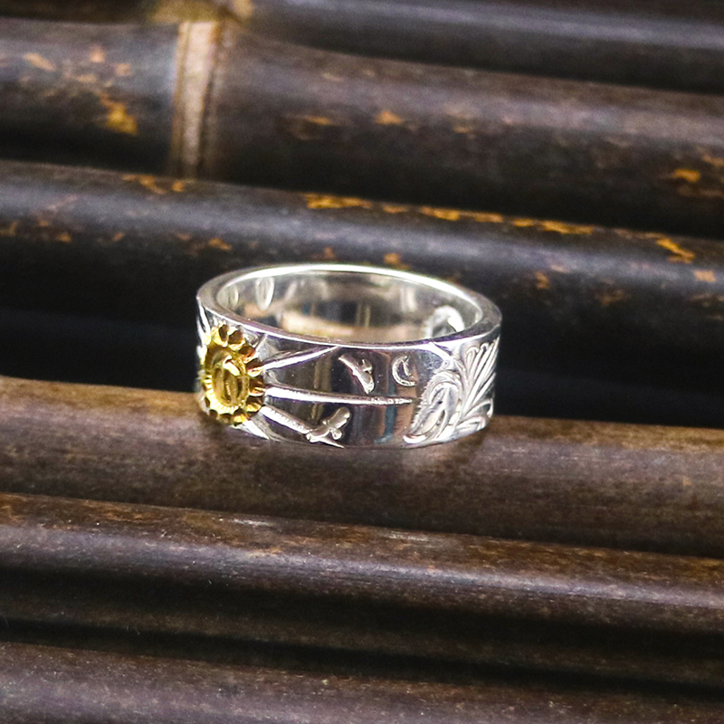 kenkikuchi菊地健手工射线点金飞鸟平打唐草闭口戒指925纯银男女