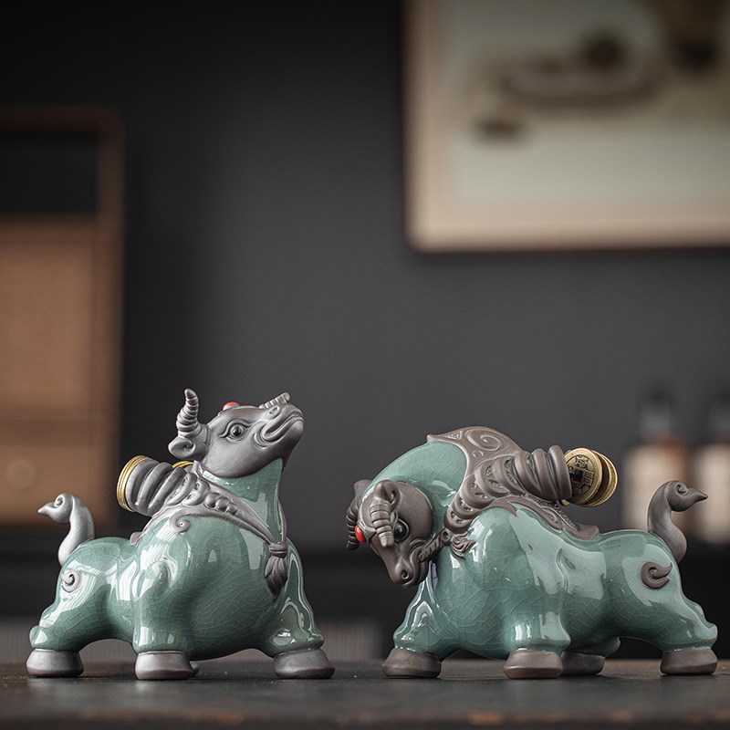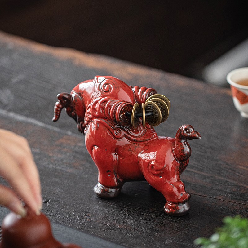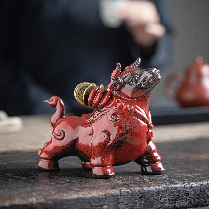 创意陶瓷招财红色牛摆件家居客厅办公室桌面牛气冲天Y生肖牛装饰