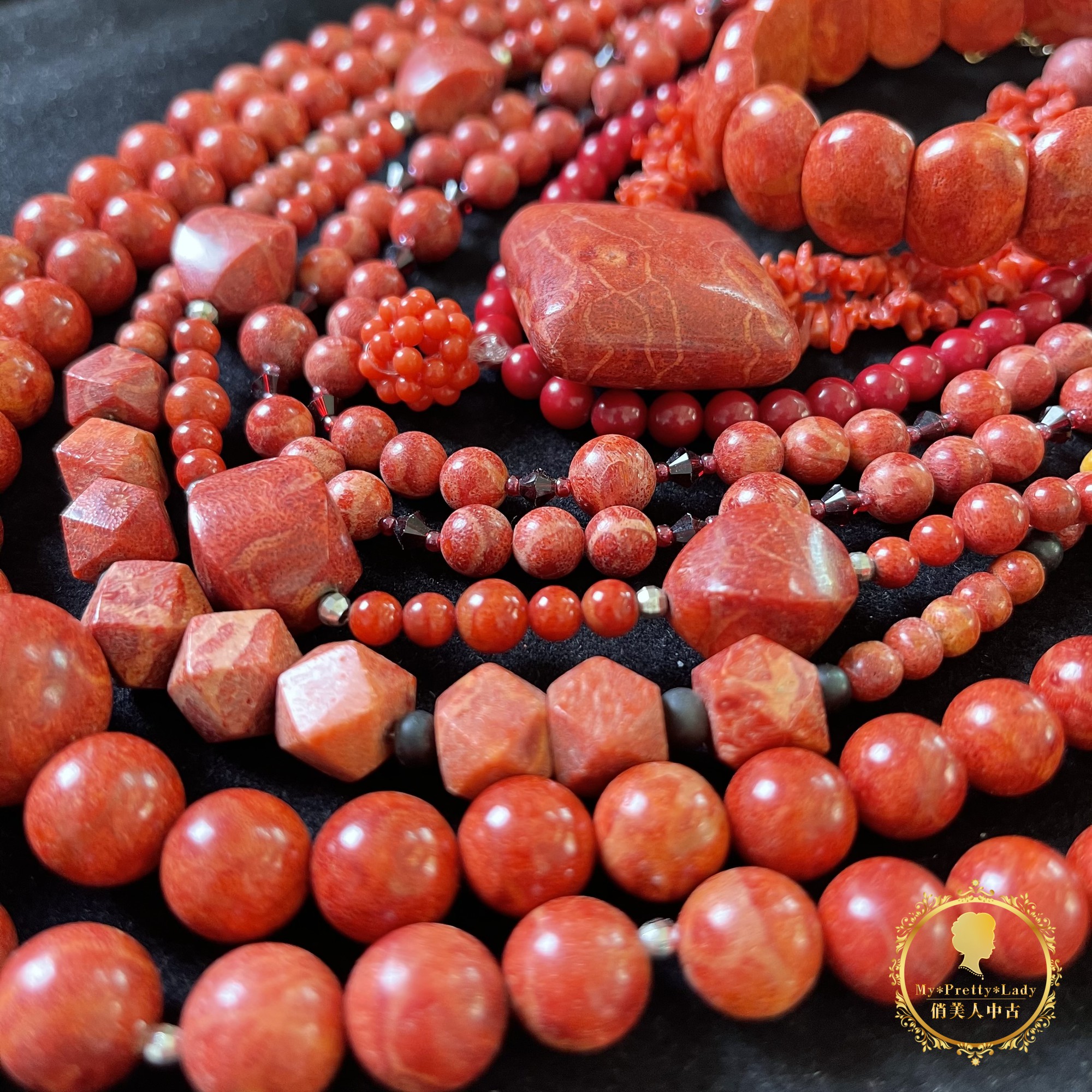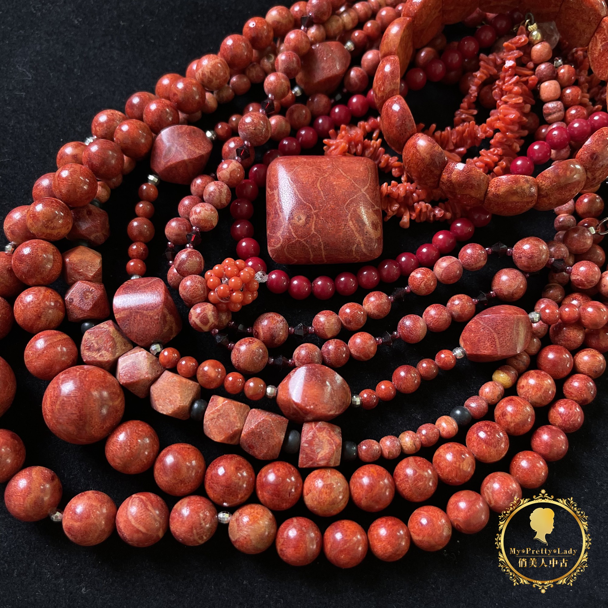 日本天然深海有机宝石深红色手镯项链圆珠切割复古梅花扣项链S20