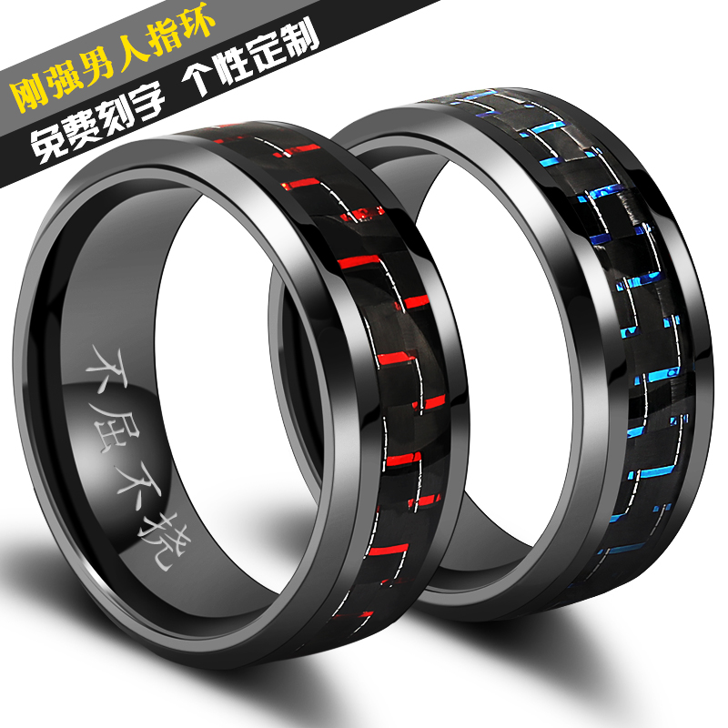 钛钢潮男炫酷碳纤维戒指日韩版黑色个性食指戒指蓝色尾戒学生戒子