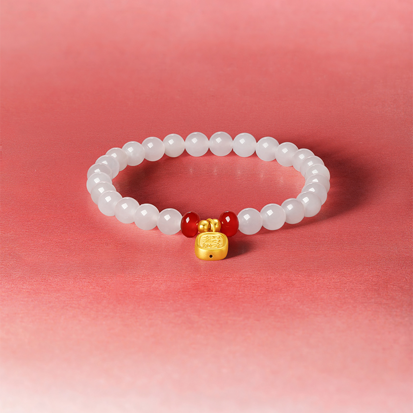 周六福和田玉手串女金镶玉黄金白玉玉石福喜乐手链节日礼物