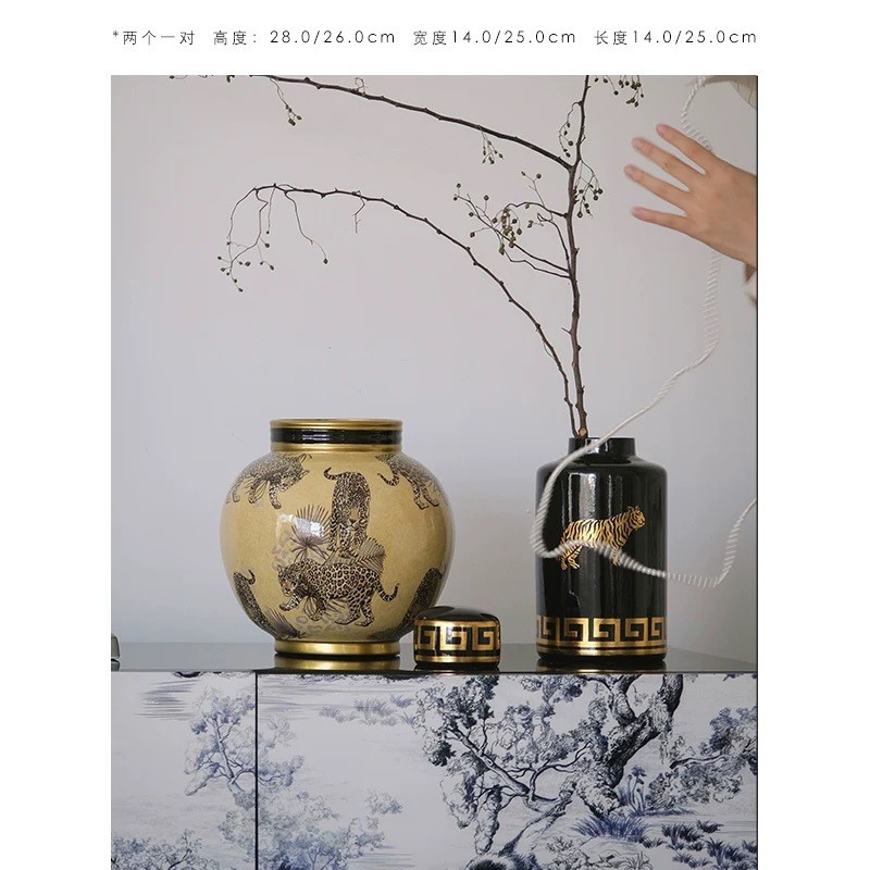 不止收纳聚宝盆c@rtier手绘陶瓷感“猛虎蔷薇”储物罐摆件花瓶