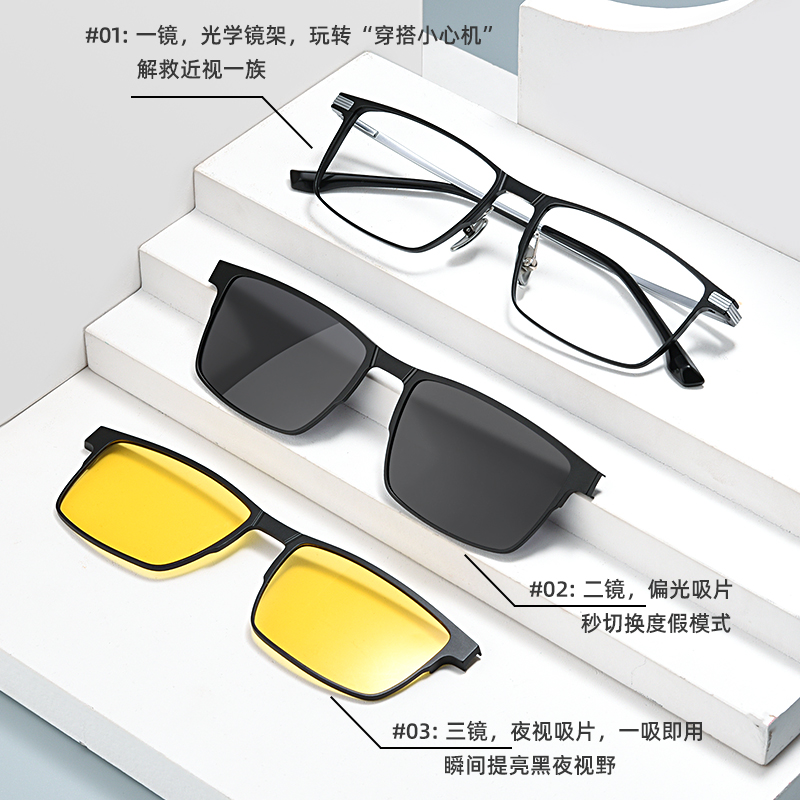 磁吸套镜眼镜近视男开车专用钓鱼偏光太阳镜夜视墨镜夹片日夜两用