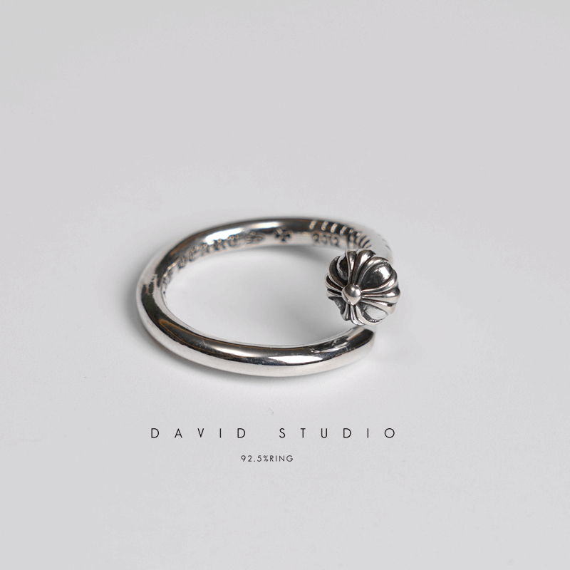 david 定制S925纯银可调节钉子十字架情侣戒指 对戒 女款指环