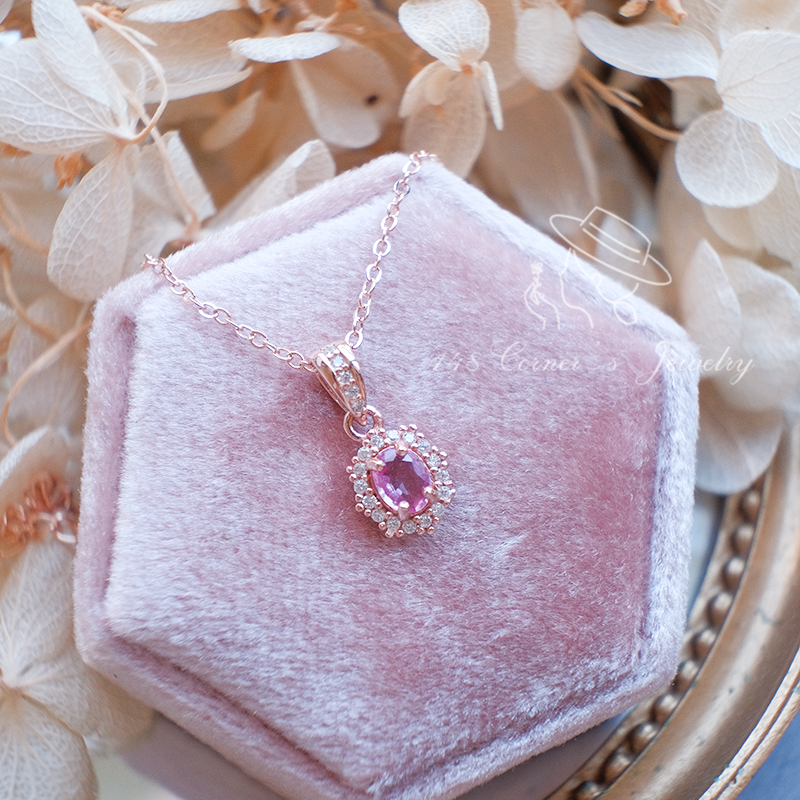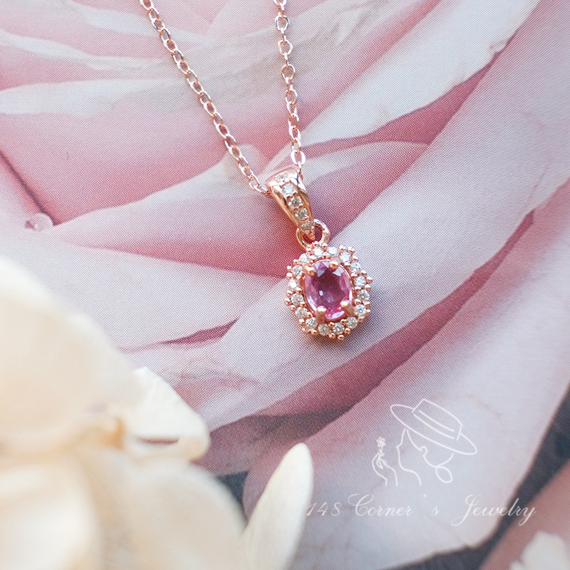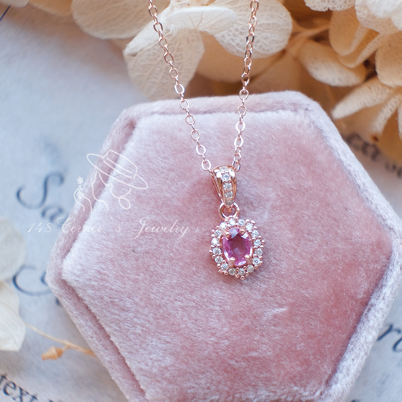 薄雾蔷薇 气质甜美精致小巧粉蓝宝925纯银镀玫瑰金锁骨链短项链