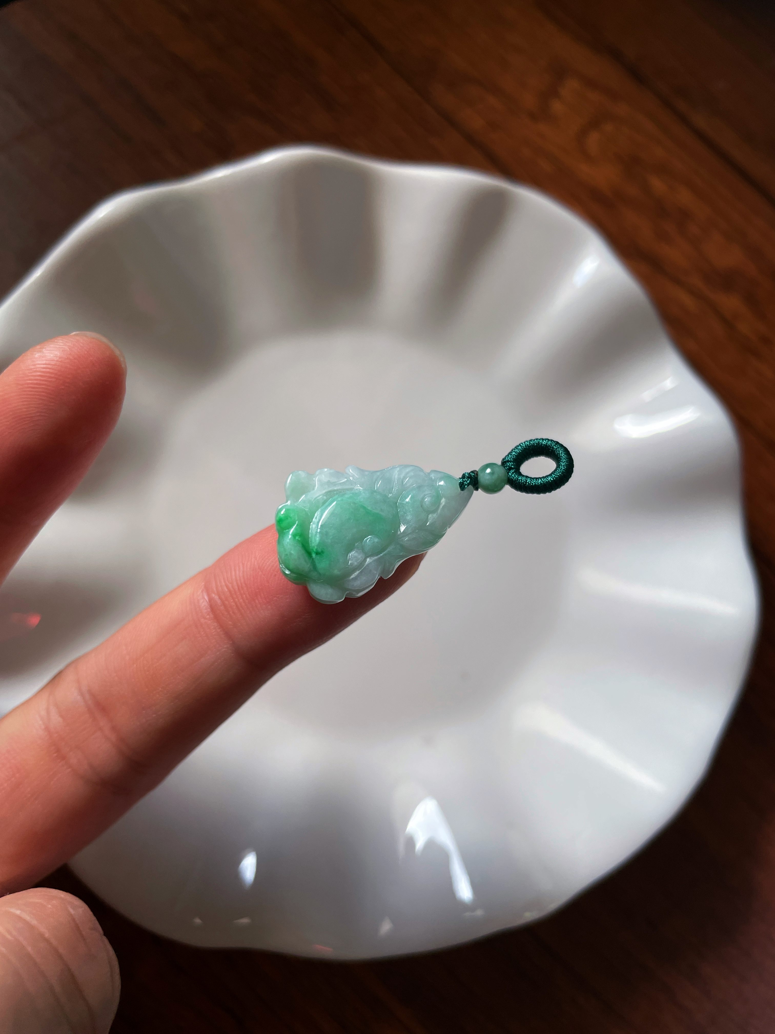 天然翡翠A货招财如意小白菜遇百生财锁骨链小吊坠包包车挂件玉坠