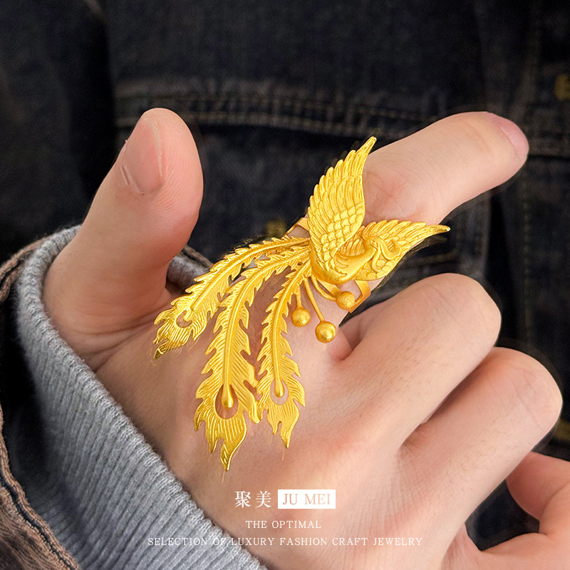 女款越南沙金古法大凤凰戒指新娘婚庆个性凤凰活口可调节戒指