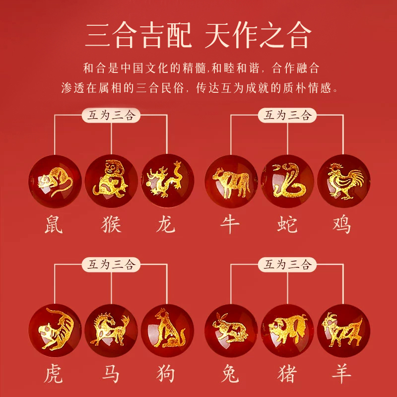 2026年三合红绳手链本命年太岁红手绳十二生肖马三合贵人编织手绳