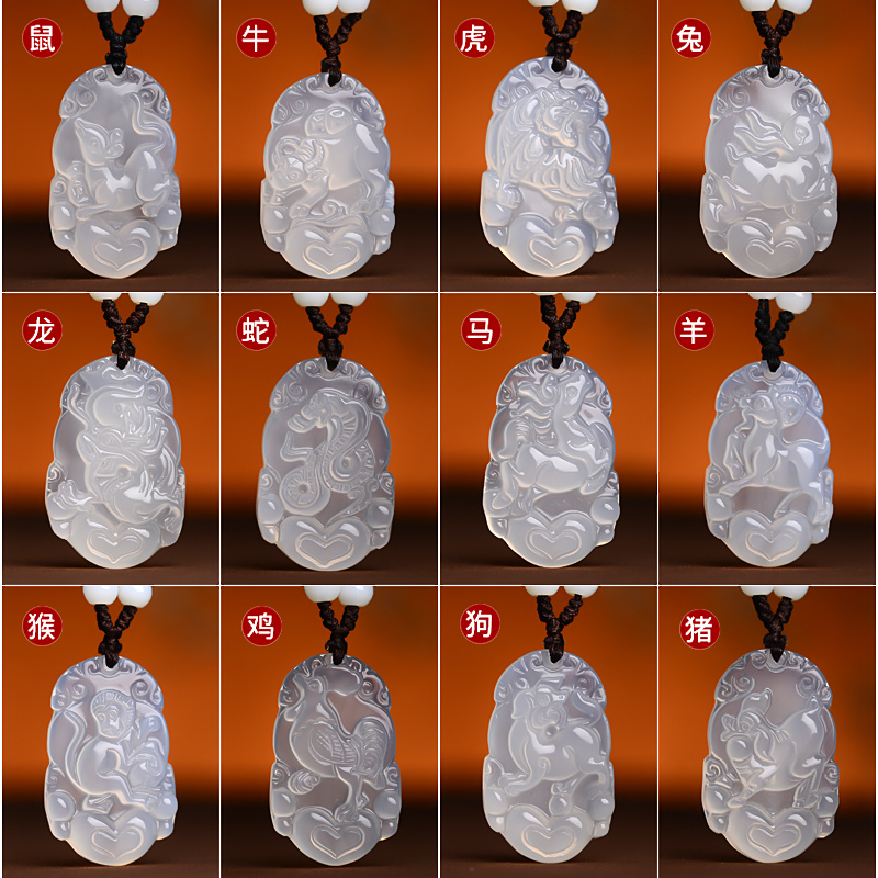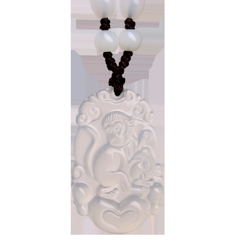 天然白玛瑙男女十二生肖属猴吊坠本命年守护神钥匙扣挂件玉髓项链