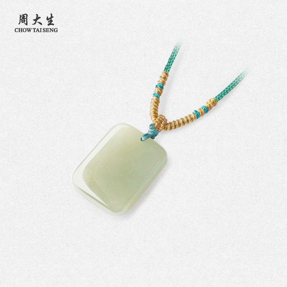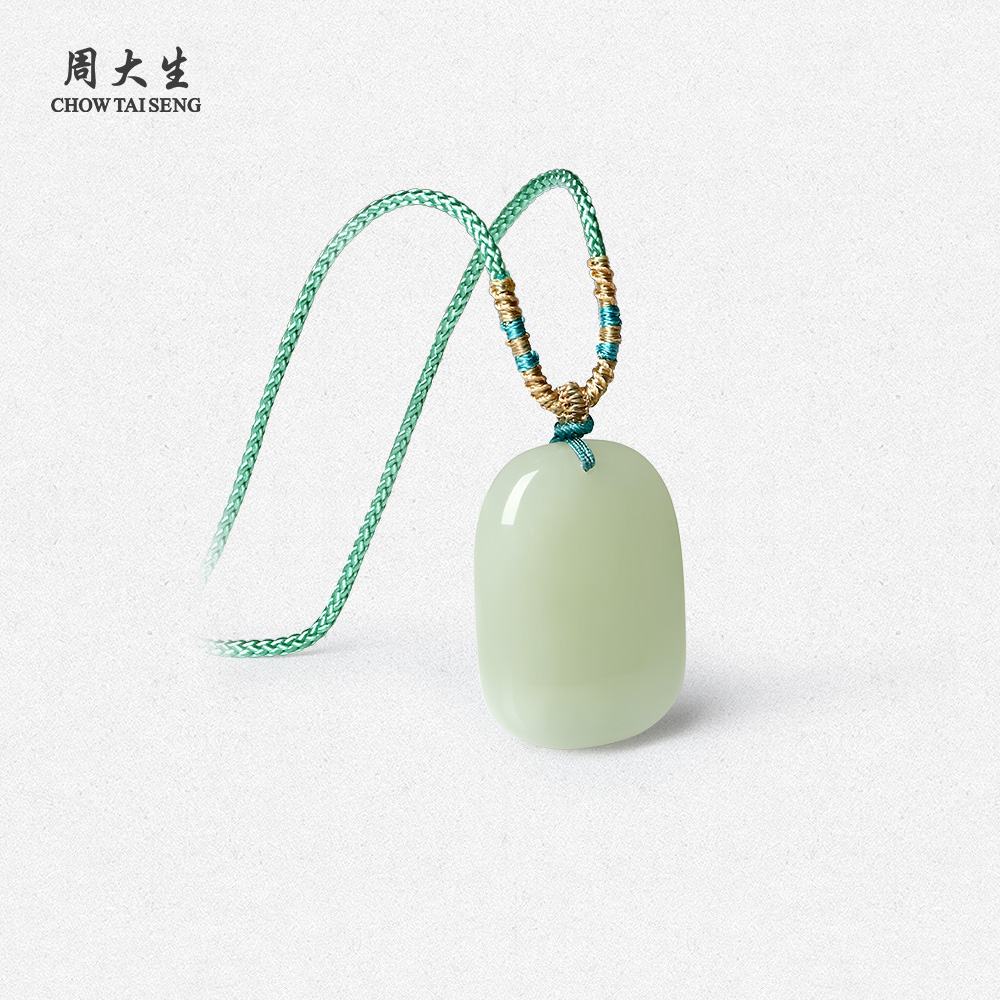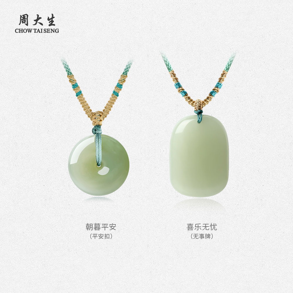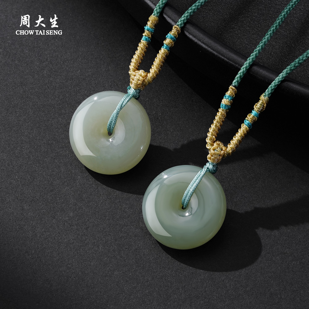 周大生和田玉平安扣吊坠男女款青玉石项链编绳挂坠生日礼物送女友