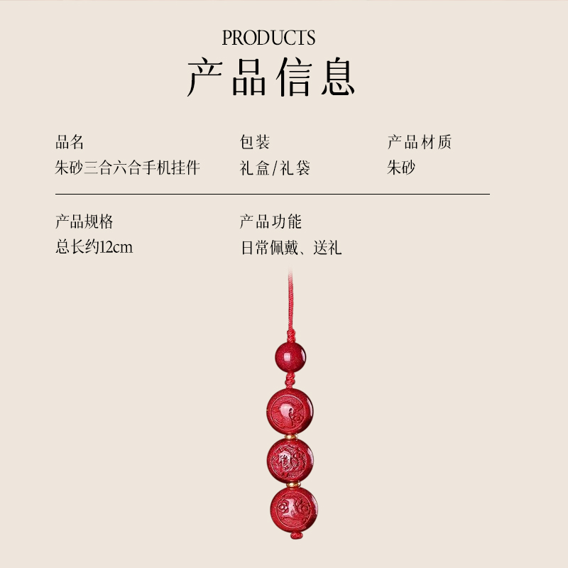 遇见普陀山朱砂2026年属马本命年三合六合手机链钥匙扣汽车挂件男
