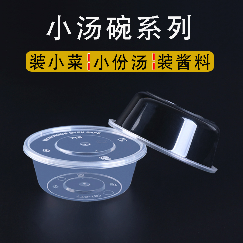 150ml一次性餐盒透明外卖打包盒酱料咸菜小菜塑料盒圆形汤碗带盖