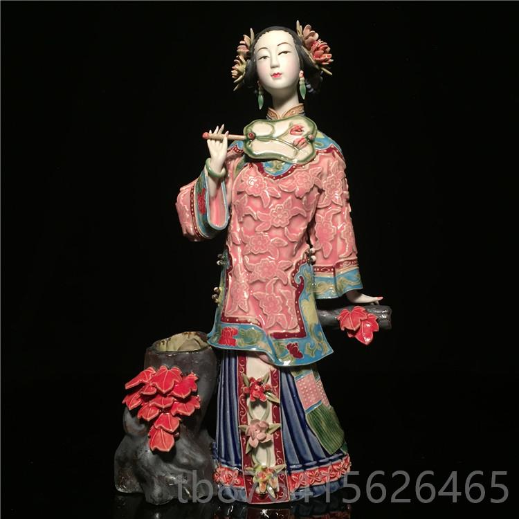 正品石湾公仔瓷仕女摆件家居厅装设饰品陶复古新中式桌面客摆特色