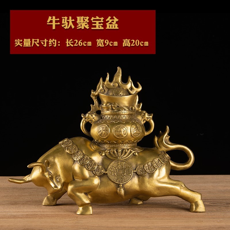纯铜牛聚宝盆牛财运牛摆件家居装饰客厅办公室桌面旺运金牛铜牛