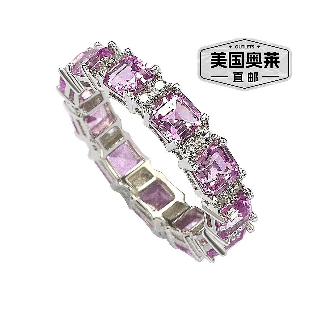 自营 Suzy Levian 纯银粉色蓝宝石和钻石口音永恒戒指 - 粉红色