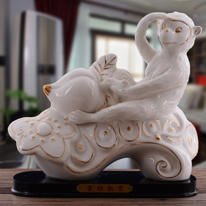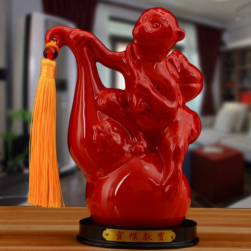 陶瓷猴子摆件十二12生肖猴红色客C厅摆设瓷器风水家居装饰品猴礼