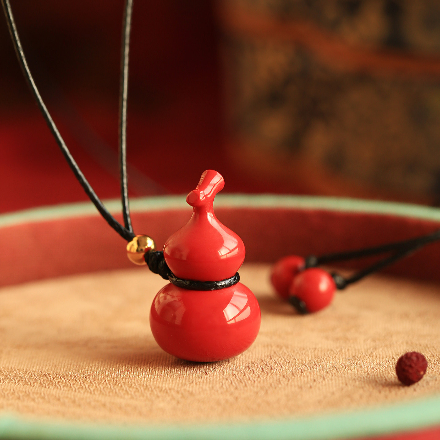 福禄朱砂葫芦吊坠女红色本命年项链毛衣链送2026新年过年马年礼物