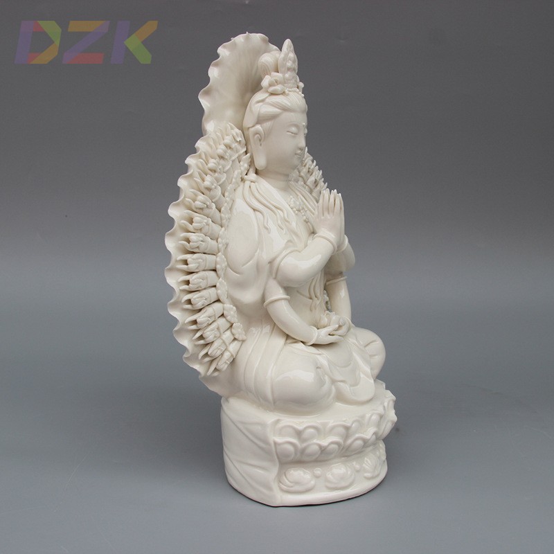 现代白色装饰摆件家居工艺礼品陶瓷12英寸坐莲千手观音白瓷工艺t6