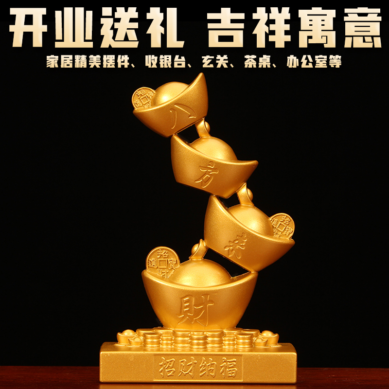新款元宝步步高升摆件沙金色玄关收银台桌面摆件招财开运开业礼品