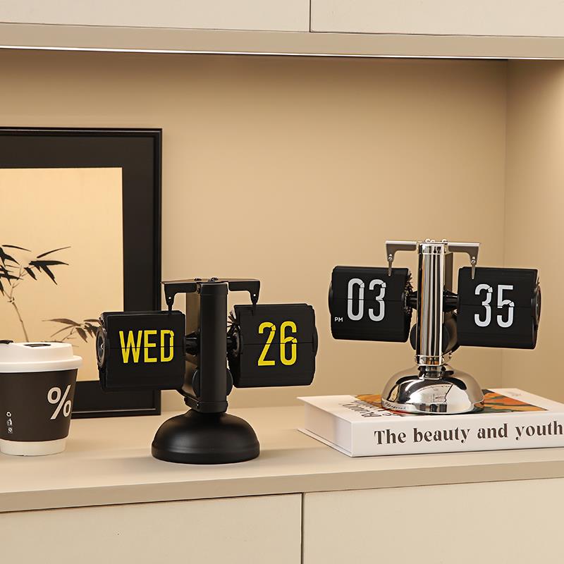 日历摆件自动翻页时钟桌面复古机械表摆台式数字钟表创意客厅装饰