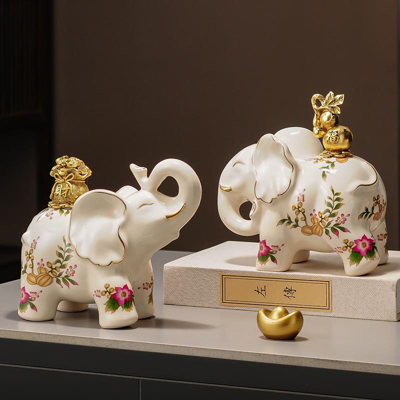家居装饰品陶瓷大象摆件电视柜酒柜客厅高档旺宅葫芦裂纹釉工艺品