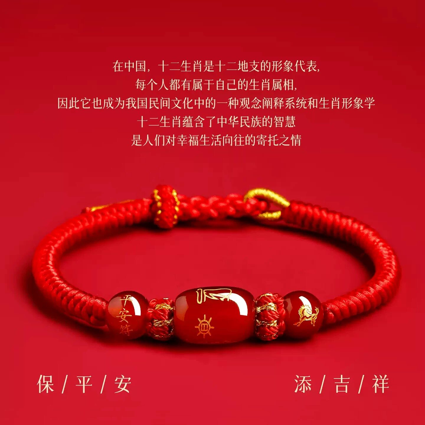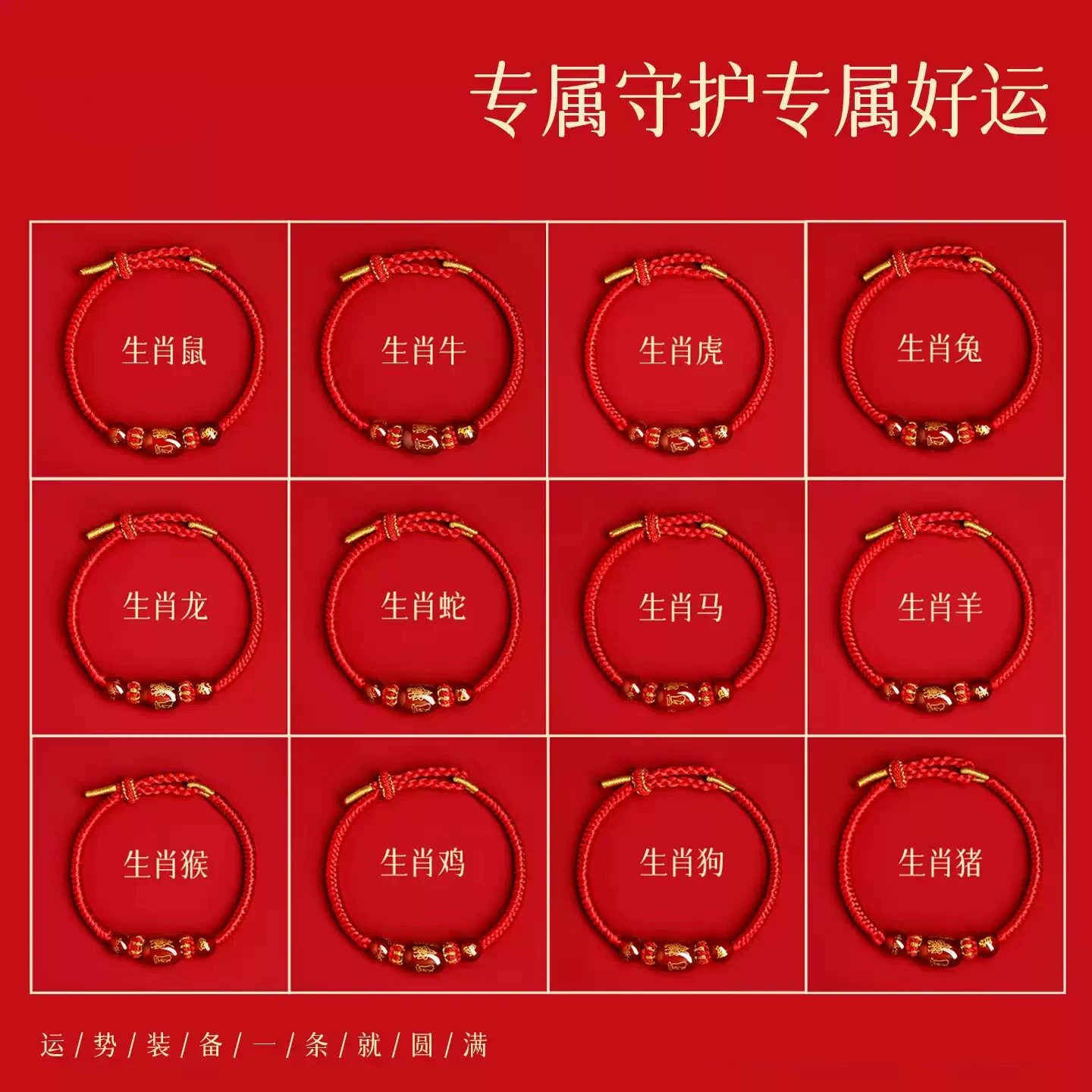 新款马年太岁红绳手链手绳编织红玛瑙本命年属马兔鼠牛红色护身符