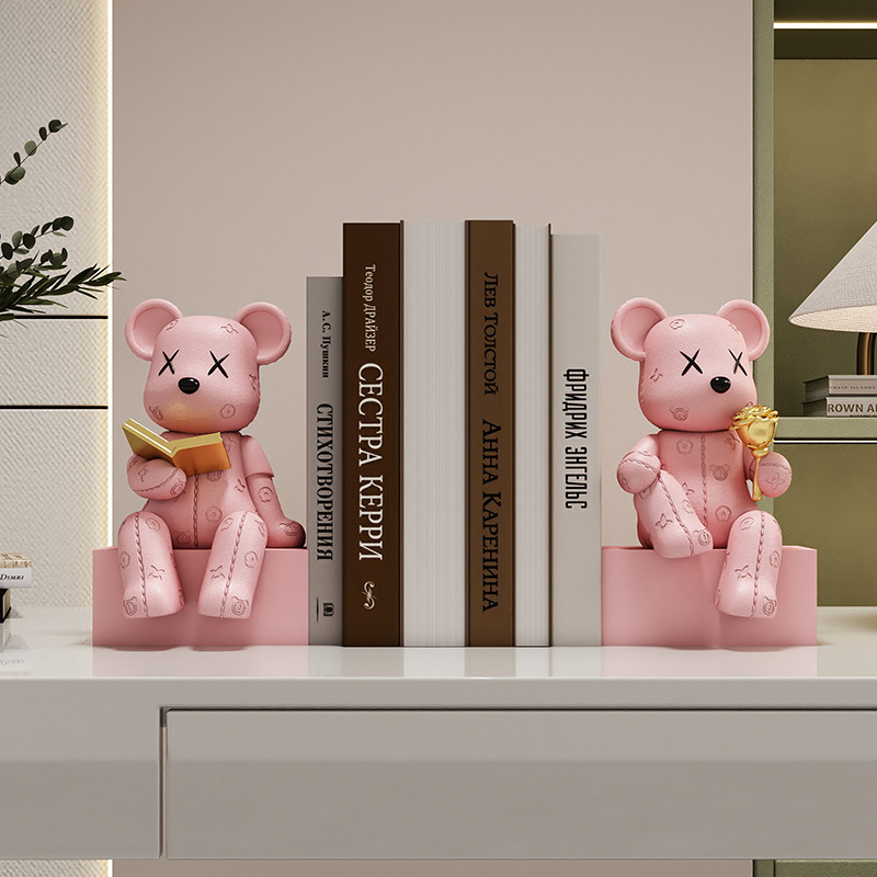 源头厂家奶油风暴力熊桌面小摆件创意书靠书立客在校电视柜玄关