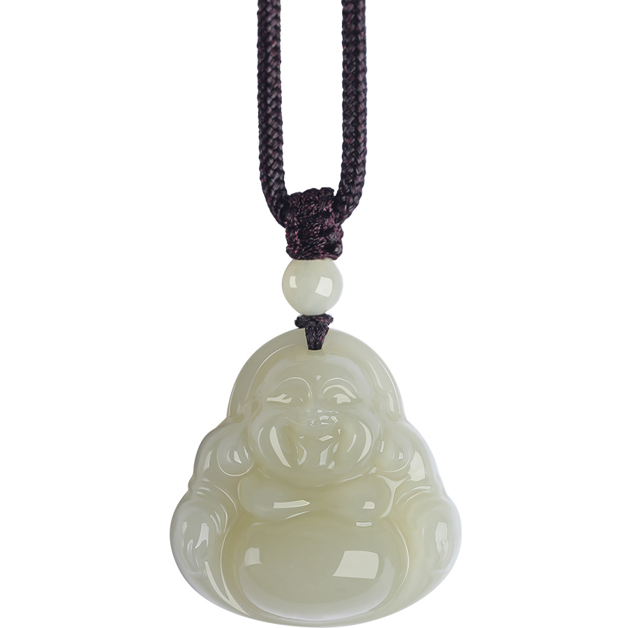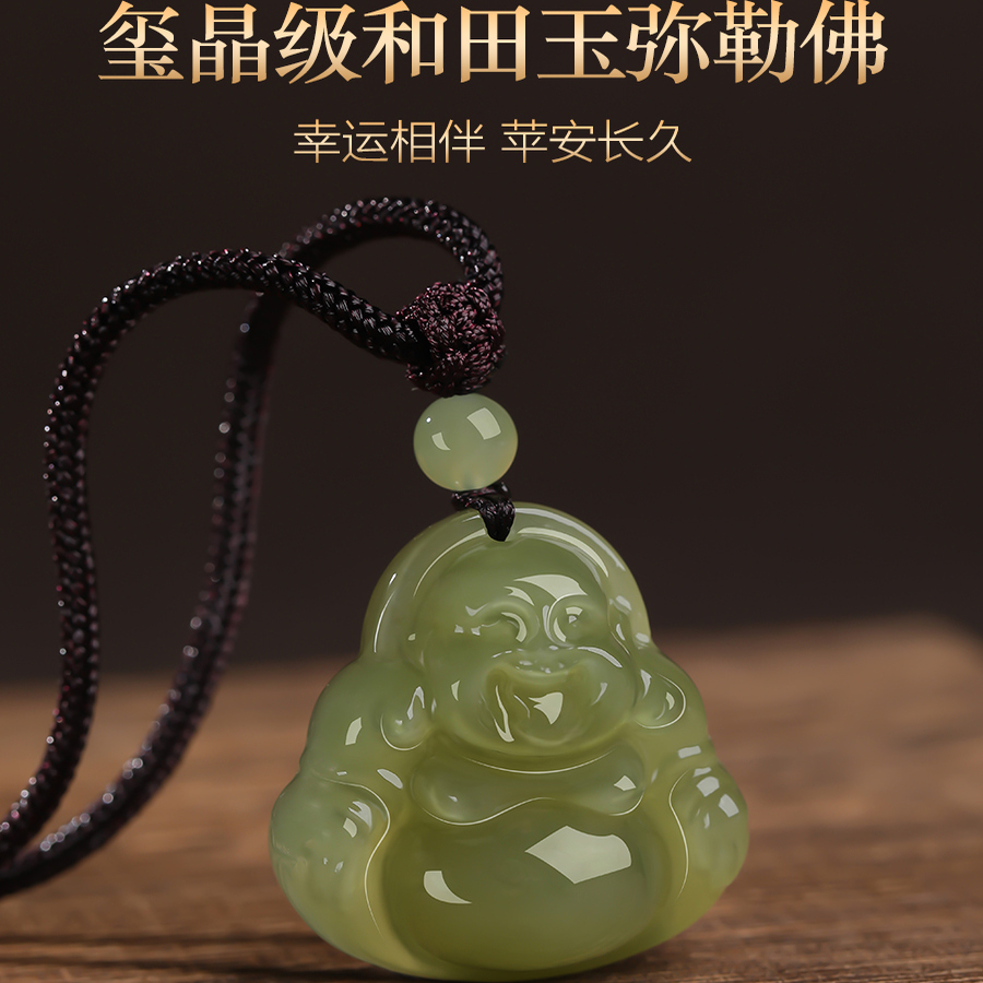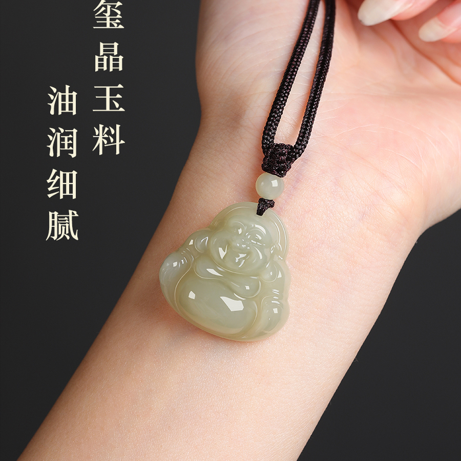普陀山保真天然和田玉弥勒佛吊坠女玉佛头玉坠项链小佛公玉石玉佩