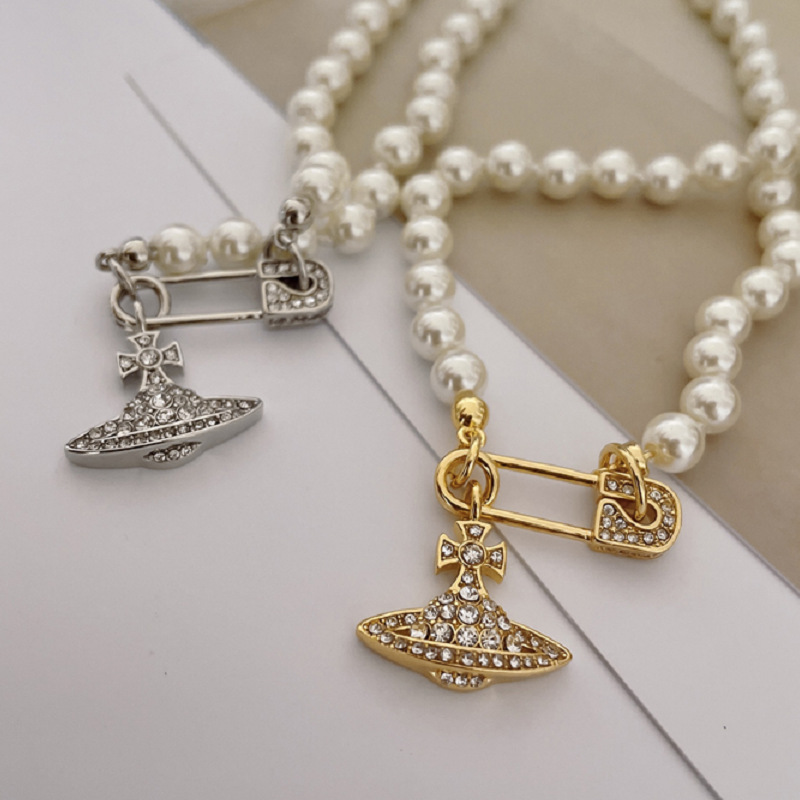 抖音热销西太后别针星球项链珍珠锁骨链小众复古项饰厂家直销代发