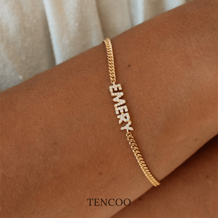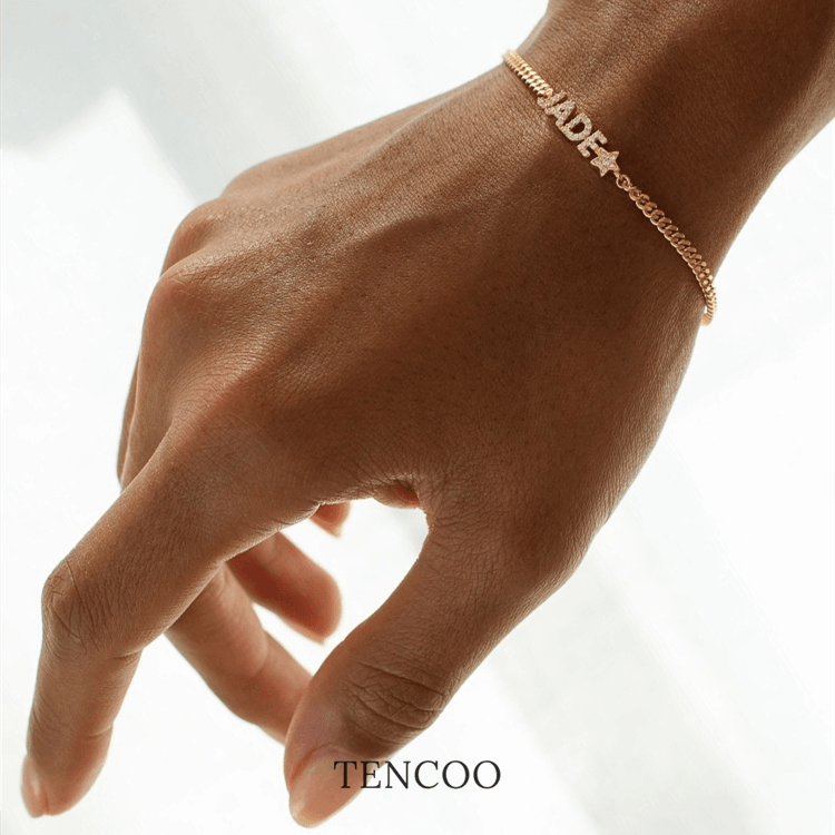 Tencoo定制满钻名字手链s925银古巴链3mm 个性小众