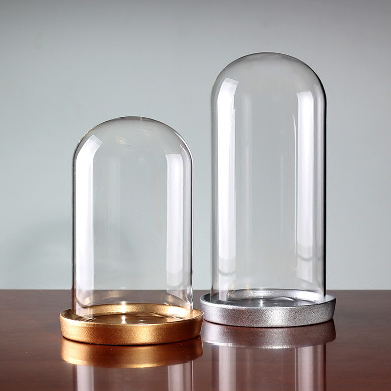 kaheku轻奢金色陶瓷底座手工高硼硅透明玻璃罩永生花创意桌面摆件