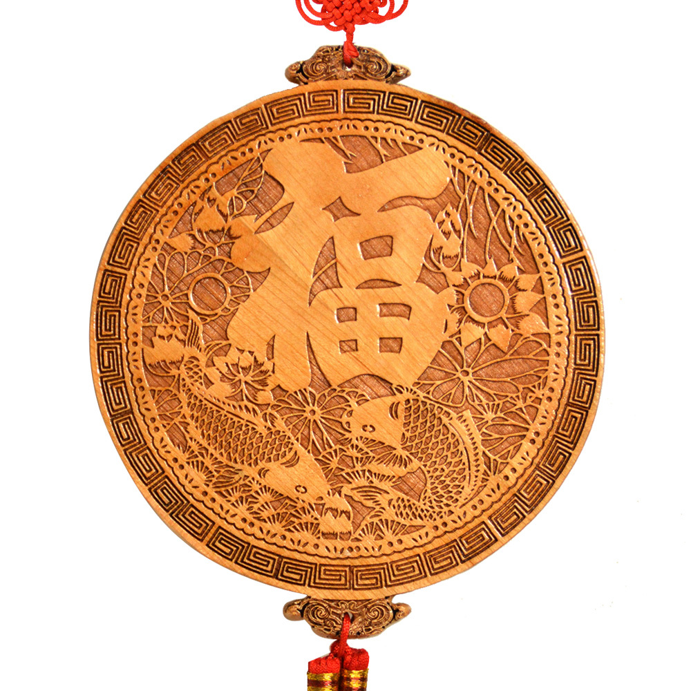 禅意阁 桃木八卦镜富贵鱼挂件木雕客厅门对窗穿堂挂件摆件