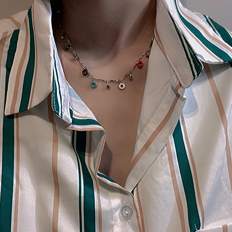 森系甜酷风彩色滴油甜甜圈项链男潮2025年新款女ins嘻哈锁骨链子