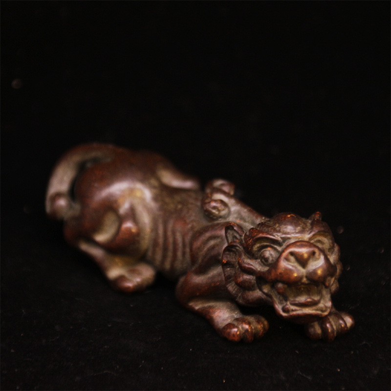 精品创意古老纯铜实心茶宠汽车摆件貔貅盖置笔架茶桌家居