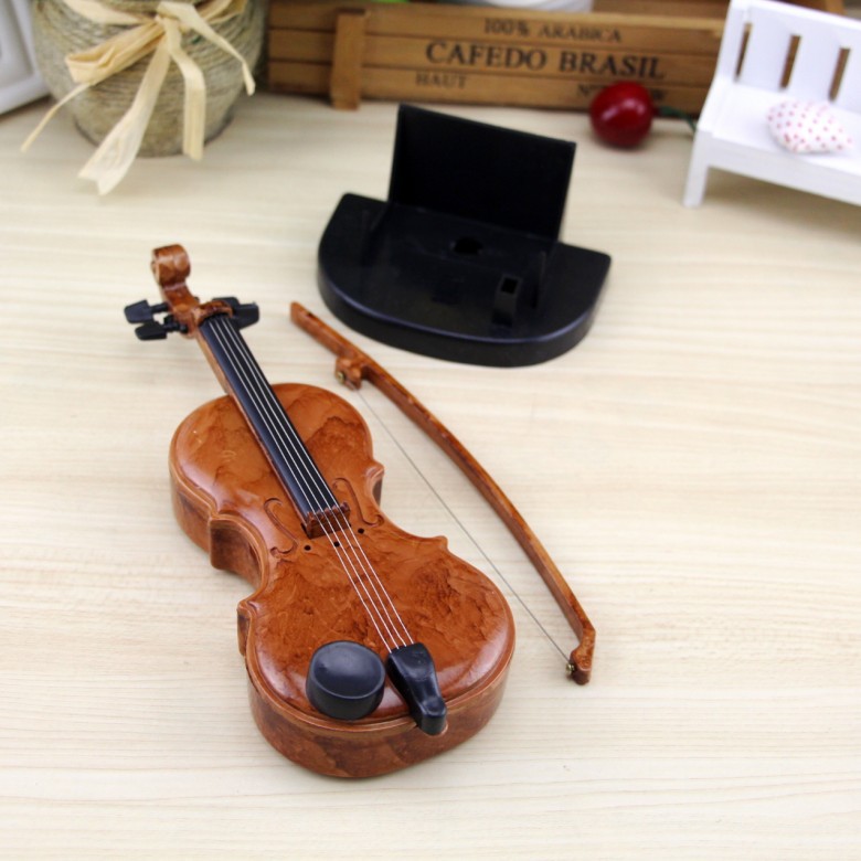 D668新款塑料小提琴音乐盒 创意可爱迷你八音盒生日小礼物礼品