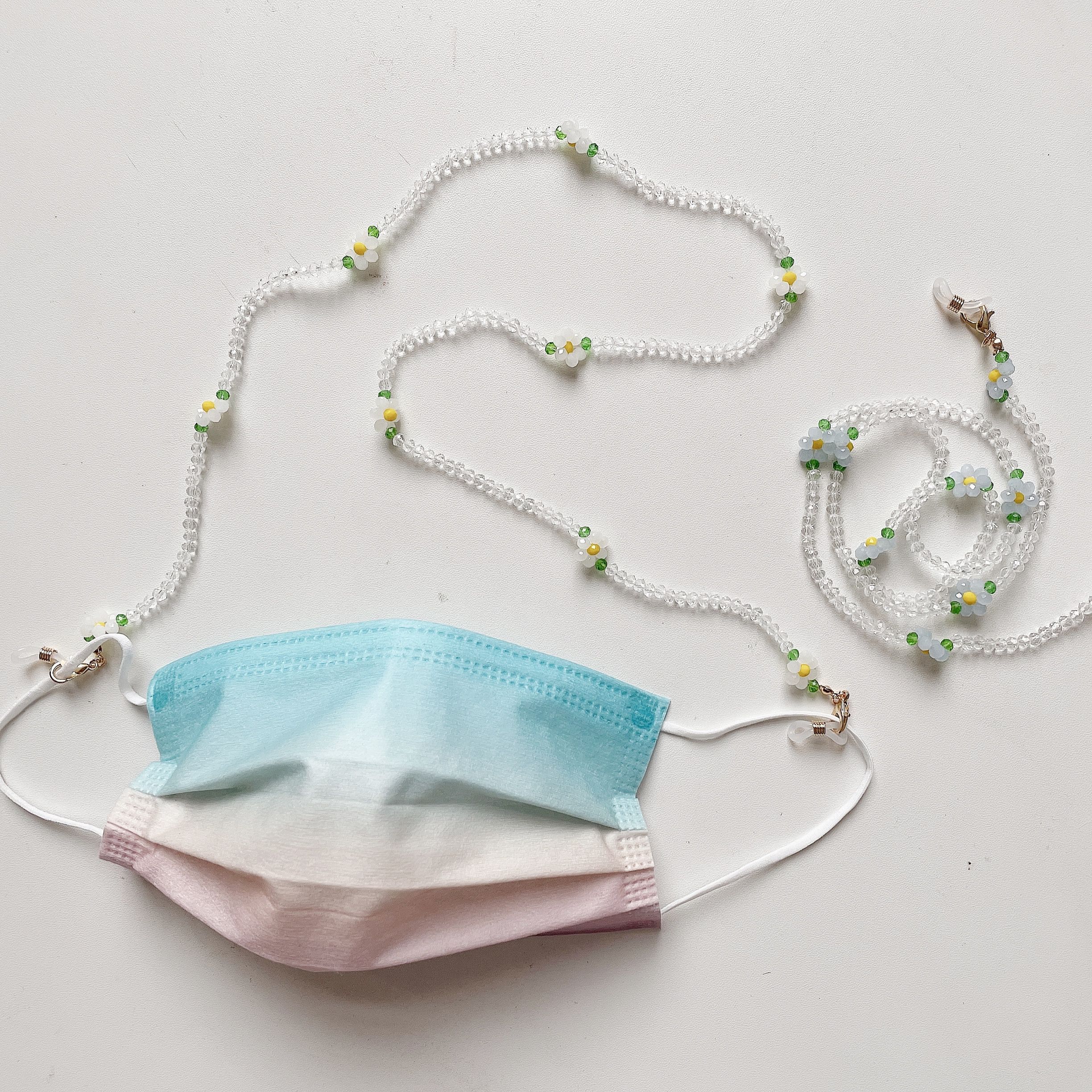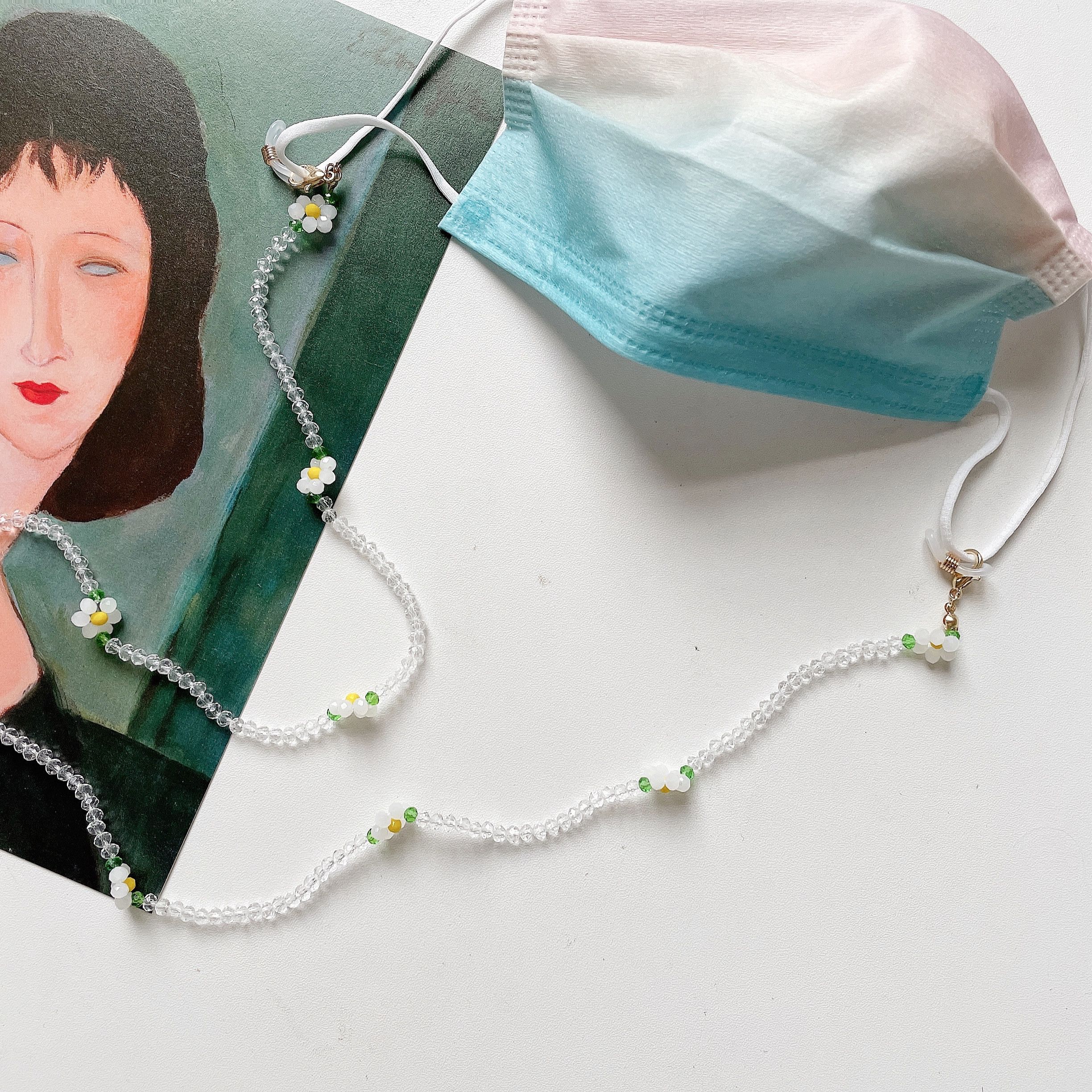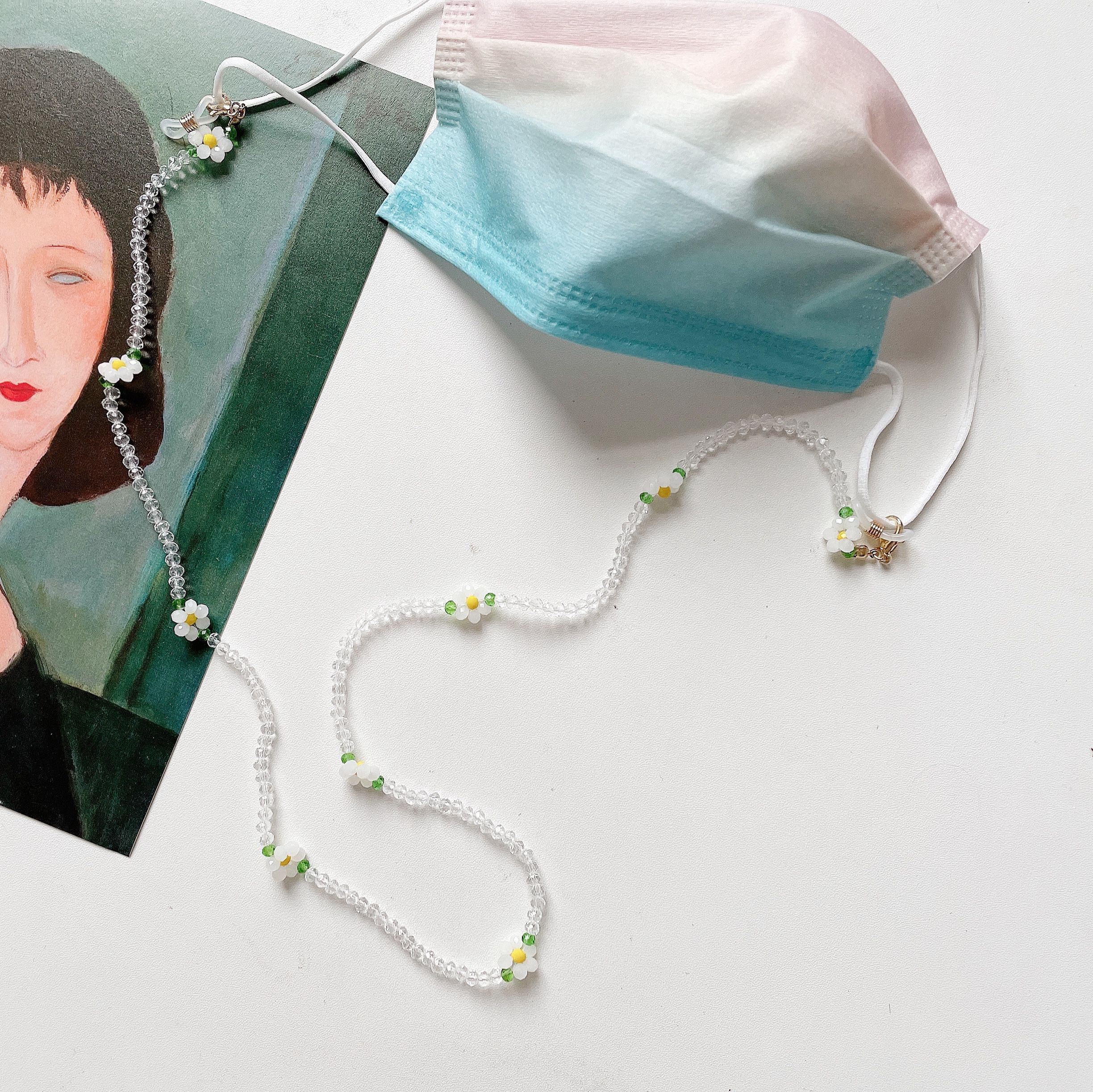 口罩链串珠亚克力小花细链新款个性透明眼镜链防丢链挂脖装饰项链