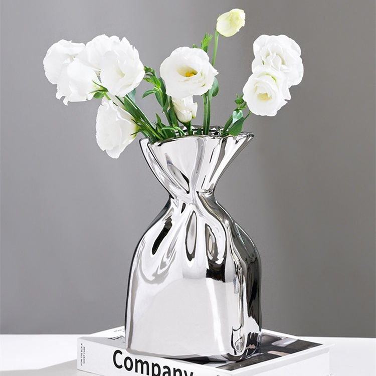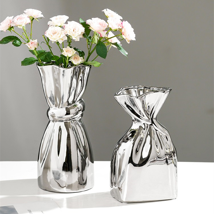 轻奢摆件北欧简约陶瓷镀银花瓶创意可水养鲜花插花仿真花客厅花器